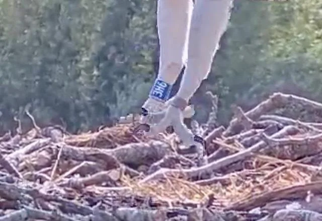 As predicted the week started with another ringed ‘intruding’ osprey Blue 3H6 that landed on the nest at 16.21pm on 12th August. 3H6 is a 2023 female raised at Site B, Rutland Water. She appeared to enjoy Gilestone as she was uncontested around the nest and made 3 appearances there over a short period.