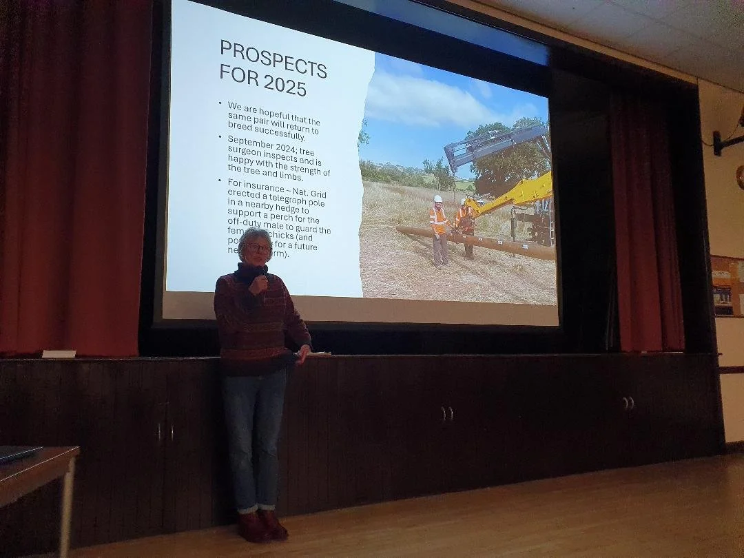 Liz Jones and Rachel Milne then took to the stage to appeal for both new and returning ‘Watchers’ to put their names forward to continue with detailed recording of nesting behaviours in what we all hope will be a successful breeding season for the established pair. Tim also gave his confident opinion that breeding would occur in 2025.