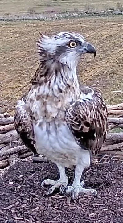 Arriving at the nest on Sunday looking well and, judging by the fish blood on her feathers, recently fed, Clogwyn was later observed shaking water off her feathers, indicating that she had had a bath. Returning to the nest, she inspected it and fiddled briefly with a stick. For a time, Clogwyn went and perched in the ivy tree before making her last visit to the nest in late morning. Then she rose and flew a circular flight up towards the Allt and was lost from view.