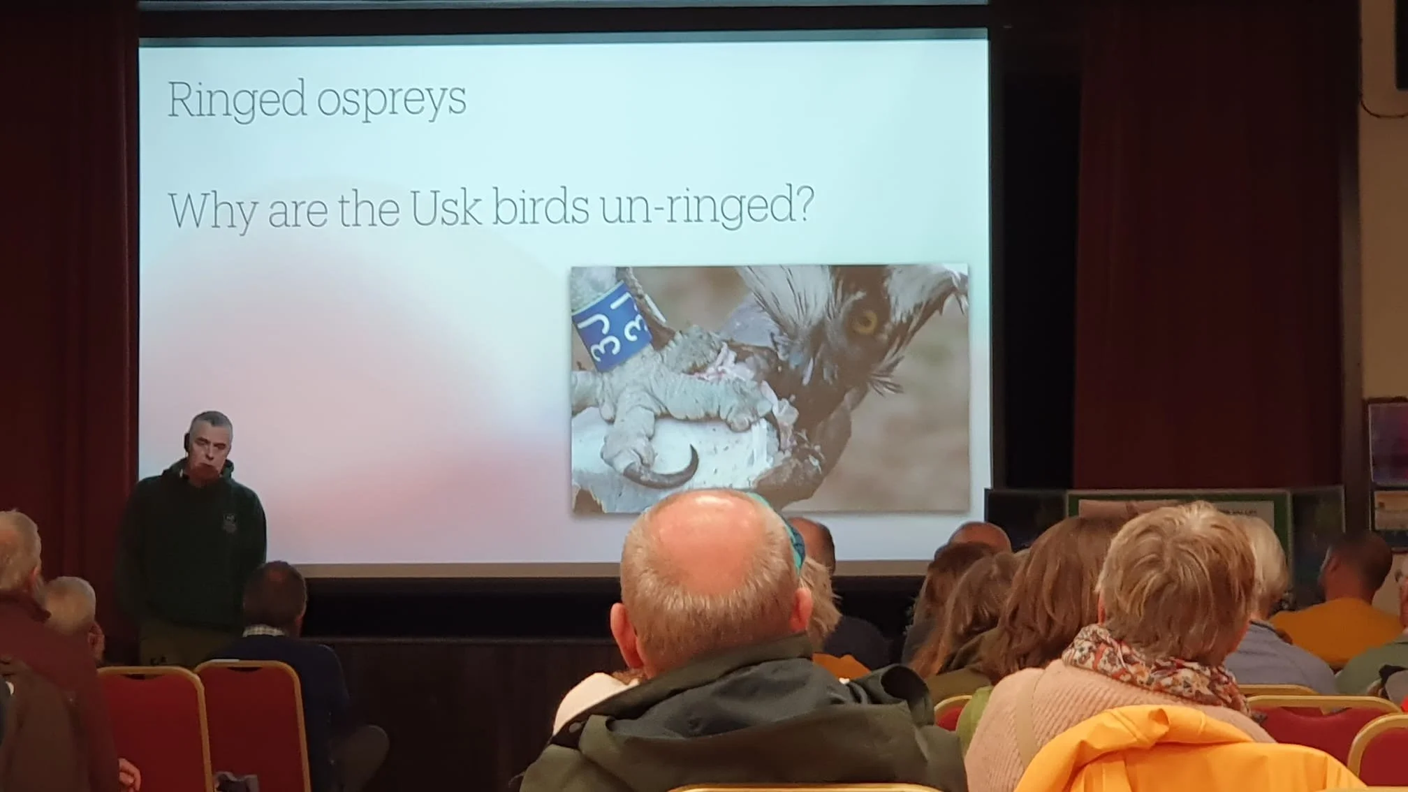 Christmas came early in Talybont on Usk on 14 November when a somewhat storm-battered audience of Usk Valley osprey enthusiasts were rewarded by an entertaining talk from Welsh osprey expert, Emyr Evans of the Dyfi Osprey Project. Emyr's reputation in all things osprey goes before him having been involved with the earliest breeding pairs in Wales at Glaslyn from 2005 before moving over to the Dyfi. His book, ‘Ospreys in Wales - The First Ten Years’, formed the basis of his talk bringing that to the present day and surmising what the next twenty years might hold for this resurgent species, and particularly our resident pair.