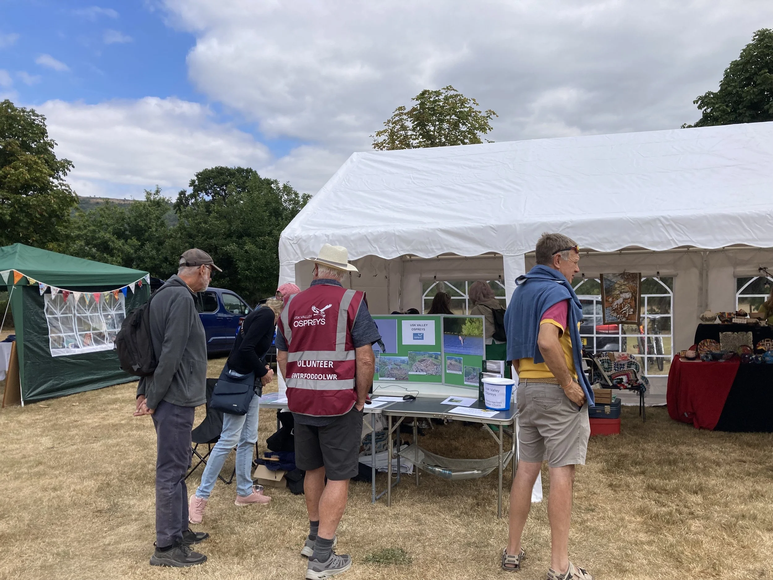 Brecon Show was our first outing with our newly donated gazebo; a trial run produced a few technical hitches but these were soon overcome and a shady space was welcomed by volunteers and stand visitors alike. We had hoped to live-stream images to a laptop for the public to enjoy but, nature being as it is, the ospreys had a day off from the nest. Maybe they were at the Show too, most of Breconshire seemed to be there. The day was divided into three shifts from 7.30am until well after 6.00pm - this in addition to erecting the stand in readiness the evening before the Show - and manned by a combination of trustees, committee members and watchers. A great group effort! Many interesting and meaningful conversations were had with people from all backgrounds and networking by the volunteers with other conservation exhibitors made it a very worthwhile and a seemingly successful event, if rather hot.